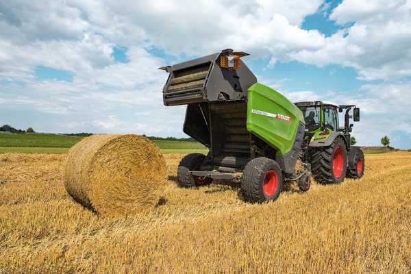 Für ein verbessertes Abnetzen wurde die Positionierung der Netzbindung bei den variablen Pressen überarbeitet. Die Netz-Schachtbindung sorgt für einen gleichmäßigen und zuverlässigen Abnetzvorgang auch unter schwierigen Erntebedingungen. So wird die Einsatzsicherheit der Fendt Rotana V weiter erhöht.