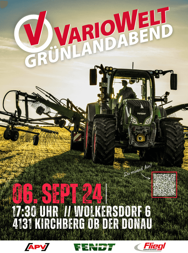 Auch den neuen Fendt 600 kannst du hier live bei der Grünlandarbeit erleben. Zusätzlich gibt es spannende Einblicke in die Nachsätechnik von APV und die Gülletechnik von Fliegl. Für Speisen und Getränke sorgt die Freiwillige Feuerwehr Kirchberg ob der Donau. 🦾